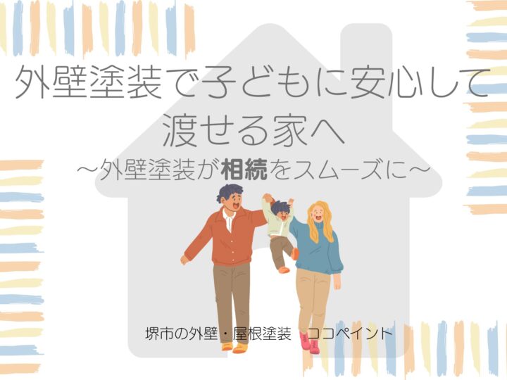 2026年1月20日 更新!外壁塗装で子どもに安心して渡せる家へ ~外壁塗装が相続をスムーズに~ 堺市の皆様、こんにちは! 堺市創業年数No.1、外壁塗装・屋根塗装専門店のココペイントです! ブログ担当は、これまで4500件の施工をさせて頂いている藤井です。 外壁塗装は「美観性」「機能性」を保つ工事とさ...MORE