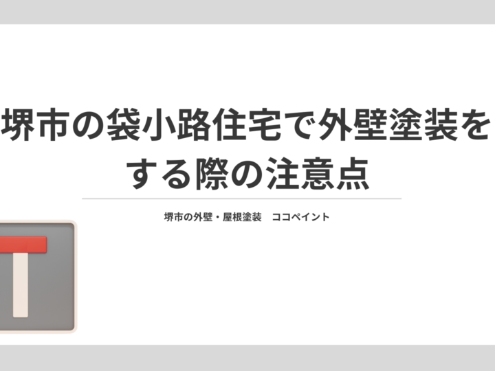 2026年1月13日 更新!堺市の袋小路住宅で外壁塗装するときの注意点 sけおい堺市の皆様、こんにちは! 堺市創業年数No.1、外壁塗装・屋根塗装専門店のココペイントです! ブログ担当は、これまで4500件の施工をさせて頂いている藤井です。 堺市では、昔長柄らの住宅街で多く見ら...MORE