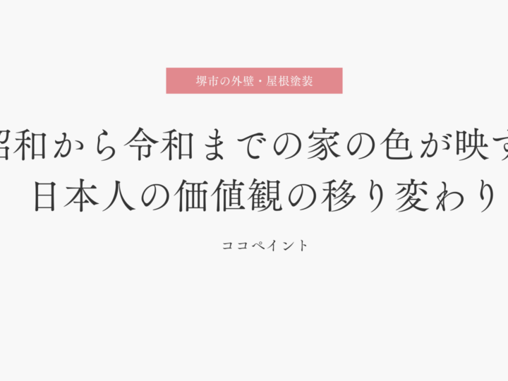 2026年1月9日 更新!昭和から令和までの家の色が映す、日本人の価値観の移り変わり 堺市の皆様、こんにちは! 堺市創業年数No.1、外壁塗装・屋根塗装専門店のココペイントです! ブログ担当は、これまで4500件の施工をさせて頂いている藤井です。 おうちの外壁の色は、単なる好みや流行ではなく...MORE
